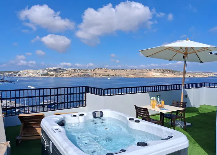 Islet Promenade Seafront Penthouse With Breathtaking Seaviews And Private Hot Tub On The Large Terrace By Getawaysmalta